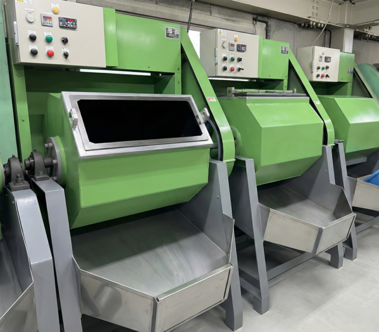 遠心・振動・流動・個別バレルをワークに合わせて組み合わせ、タクトと外観品質を両立。