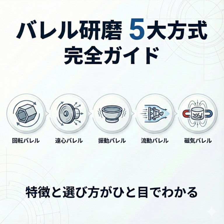 遠心・振動・流動など加工方式ごとの特徴、条件設計、メディア選定のポイントを体系化しています。