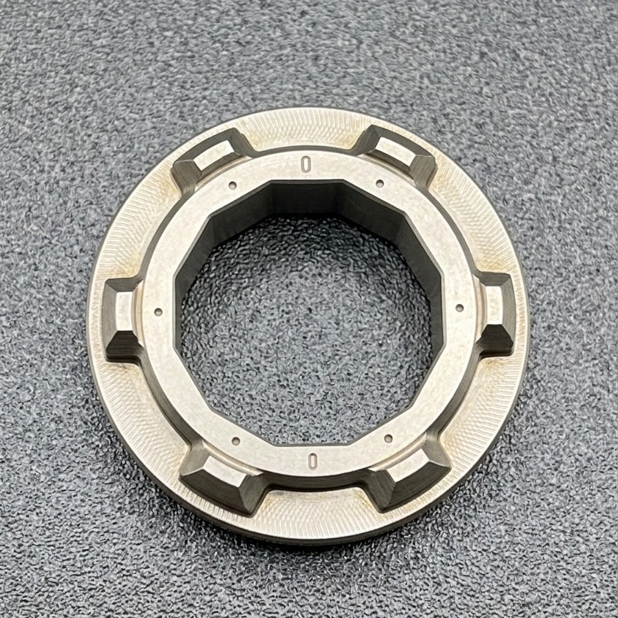 お客様からお預かりしたφ21mm×t3.7mmの焼結クラッチ部品を分析。型バリの発生箇所(外周部・内径部・クラッチ山部)やスケールの付着状態を確認し、それぞれの課題に対して最適な加工条件を検討しました。